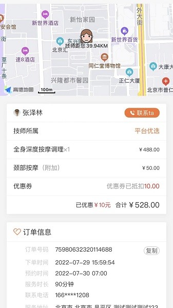客户通过线上预约,预约成功后,技师接单上门服务,服务项目;