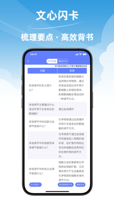 2、文心闪记:智能梳理文字要点,让背书不再痛苦。是不是觉得教材上的文字很难记啊?小AI又来帮忙啦!通过闪记技术,一段长长的文字可以变成一条条更容易记忆的问答型知识条目,这种形式不仅可以帮你梳理文字逻辑,加深理解,更容易记忆,还相当于做了模拟题,快来试试吧!