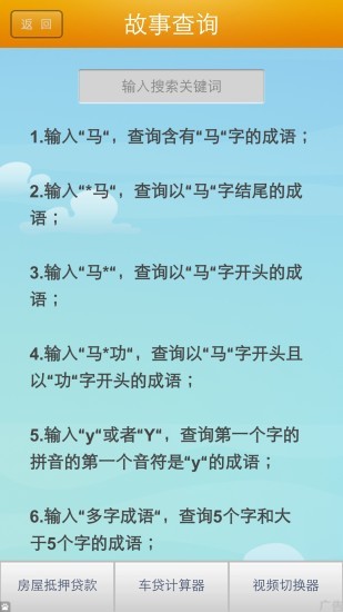 该成语故事软件,界面漂亮,方便易用,包含成语的读音、释义、出处、该成语的用法和一则成语故事。边看故事边学成语。 阅读方便;一键收藏;