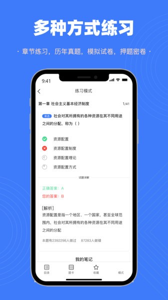 -- AI智能化练习,提供背题模式、模拟考试、章节练习等多种学习模式;