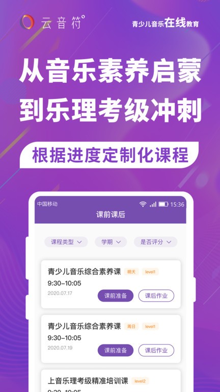 云音符app作为在线音乐教育软件,尤其适合青少年来学习钢琴,针对不同年龄和不同基础的用户会有不同的音乐课程,不仅可以进行音乐启蒙教育,还能为考级做准备,有非常实用的节拍以及对音器,支持与老师互动。