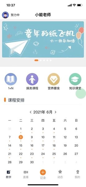 2、幼师可通过小能老师查看最近课程,班级体质测试报告,园区公告等信息