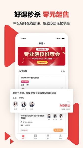 4、考研公开课,海量免费考研备考类及择校类直播课程,帮助广大考生明晰目标院校,掌控复习进度,把握备考节奏。
