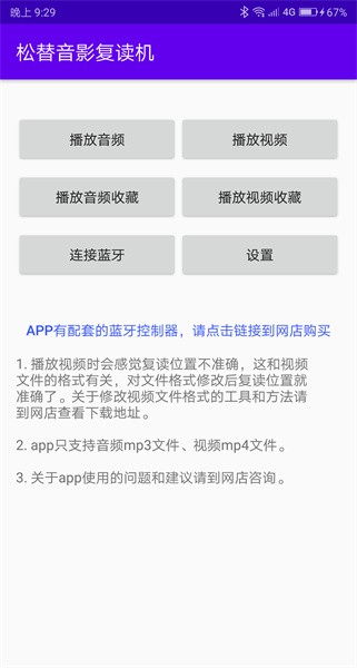 能播放音频和视频文件的复读机软件,具有AB复读、语音识别、重点句收藏复习、跟读对比等功能。有配套的蓝牙控制器,可以通过蓝牙控制器操作软件而不用操作手机屏幕,走路也能复读播放。