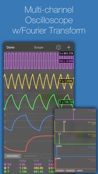 示波器还支持同时跟踪多个信号并描绘在同一个坐标系中,非常易于观察比较。