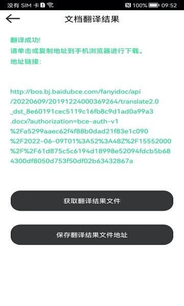 文档翻译结果云端保存,翻译结果文件可以进行下载到手机本地,也可以将下载地址保存云端,随时随地下载。