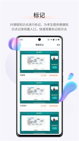 对课程知识点进行标记,为考生提供便捷知识点记录观看入口,快速观看标记知识点