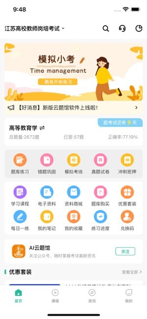 云题馆题库软件是教育学习类的备考app,涵盖丰富的题库内容,带来不同的题型,有历年真题、专项练习、押题密卷、专业课程学习,可以随时刷题,模拟考试,支持错题收藏,巩固复习,不断提升,掌握更多知识,让你考试无忧,轻松备考学习!
