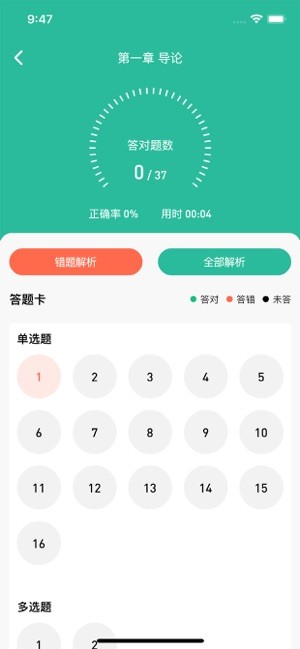 选择您要练习的章节,系统便会调出您选择的章节对应的试题进行出题供您练习