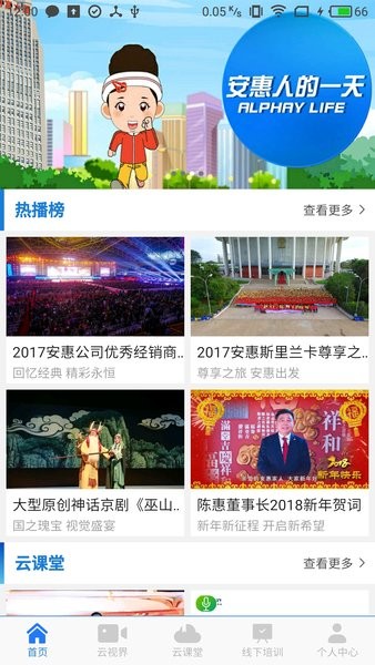 这里拥有云视界、云课堂、云直播等多个频道让用户来了解公司的产品及运营,