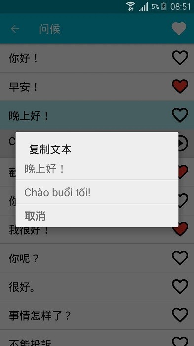 应用里还有训练模式,可以随时练习,感觉像有个私人老师一样。而且功能挺多的,比如背单词、创建收藏列表,还能用越南语订酒店房间,这些场景模拟真的很实用,特别是对打算去越南旅游的朋友来说,简直是必备工具。