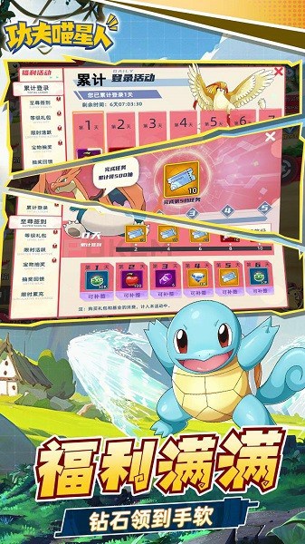 -- 登陆赠送红色小精灵-水箭龟,金币*888k,钻石*10K,精灵经验*8888K