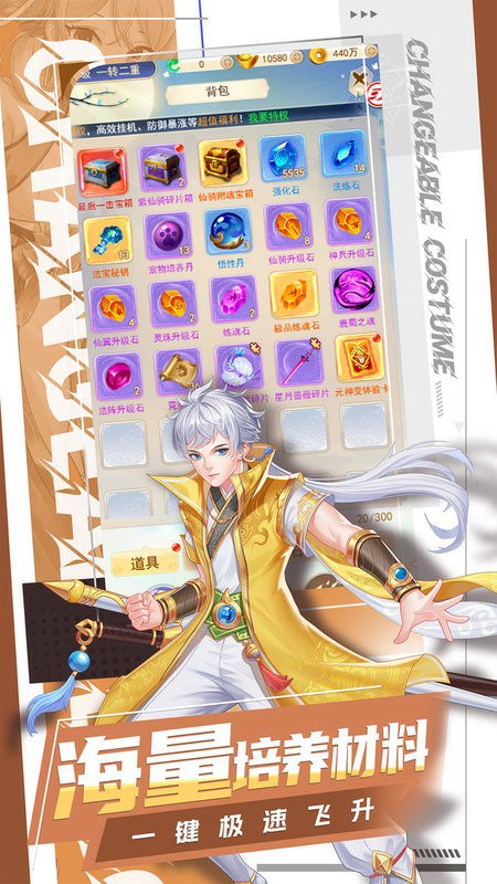《凡人飞剑》国韵国风角色精致!玩家可以根据自己的喜好选择国风特色的外显套装,别具一格韵味十足!更有多款别致坐骑、异兽、法宝,结合古代神兽传说,背景丰富内容饱满,让玩家在游戏的过程中仿佛身临其境!除此之外还有神兵装备各式灵宠等多线养成,期待您进入游戏体验~