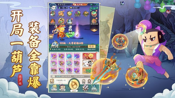 《葫芦娃传说》是一款由上海美术电影制片厂正版授权的休闲放置手游,玩法轻松有趣,适合各种类型的玩家。游戏深度还原了经典的葫芦娃角色和剧情,带你重温童年的美好回忆。通过放置挂机的方式,玩家可以在空闲时间轻松升级角色,获取丰厚奖励,非常省心。游戏内还有丰富的法宝系统,每个法宝都有独特的属性和效果,可以自由搭配使用,提升战斗的策略性和趣味性。
