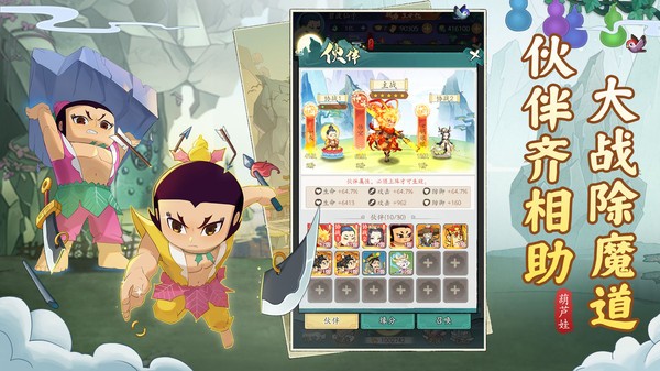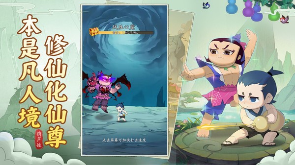 【葫芦娃传说】是由上海美术电影制片厂正版授权的休闲挂机放置手游,融合开箱新玩法;开局一葫芦,躺着也升级,小手点一点,宝葫出惊喜;炫彩装备、万千宝物,本是凡人境,修仙化神尊,更有葫芦七兄弟、爷爷、葫芦妹等众多独特伙伴相助;任您百变策略,激战仙途路,问鼎仙云巅!