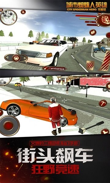 《城市蜘蛛人英雄冬季最新版》是一款非常有趣的蜘蛛侠题材手游。游戏中玩家可以扮演蜘蛛人,在城市中自由穿梭,完成各种任务和挑战。游戏设定在一个圣诞村庄的背景下,玩家需要帮助警察打击匪徒,解救被挟持的市民和孩子。游戏特色包括多种武器装备、丰富的任务系统以及华丽的动作场面。