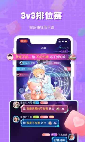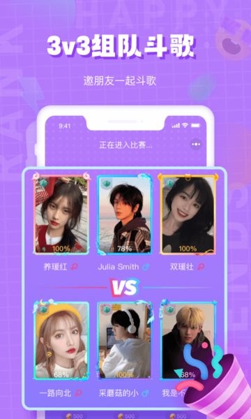 欢乐斗歌是一款玩法新奇的K歌游戏竞技软件,70%都是00后小姐姐噢!单人模式,双人模式,3V3模式,想怎么唱就怎么唱!线上KTV,快和好友一起来嗨歌吧!在这里,总有一群人懂你的歌,懂你的情绪,你唱,我听。