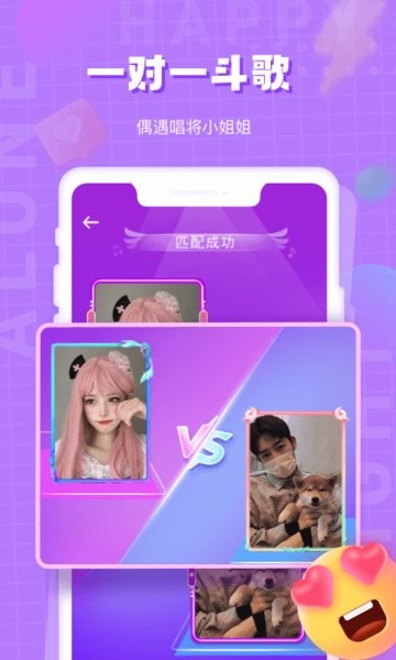 选歌速配,双人实时对唱K歌!感觉来电即解锁无限合唱,心动只在开口瞬间~