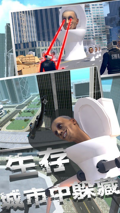 -- 马桶人在城市里肆意妄为,拯救那些被抓走的人类、保护城市的平安,击败马桶人