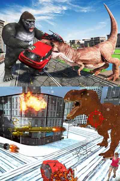 金刚向前冲游戏是玩家可以扮演金刚在城市之中与恐龙进行大战的趣味游戏,真实模拟的沙盒城市之中,玩家不仅要面对恐龙的威胁,所有的人类也是你的敌人,快来战斗吧!