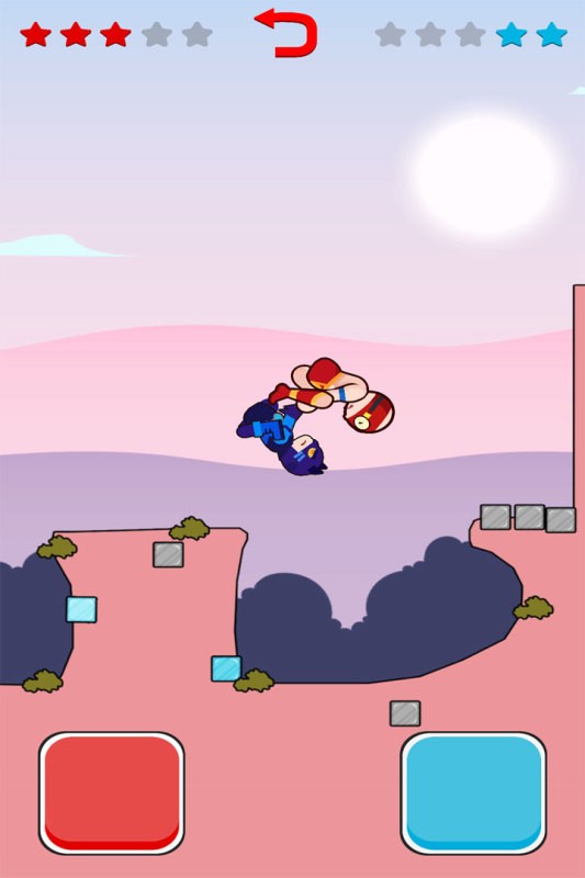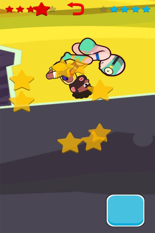 -- 游戏中的两名角色在开始时都是曲腿的,一按,你控制这边的人物就会蹬腿