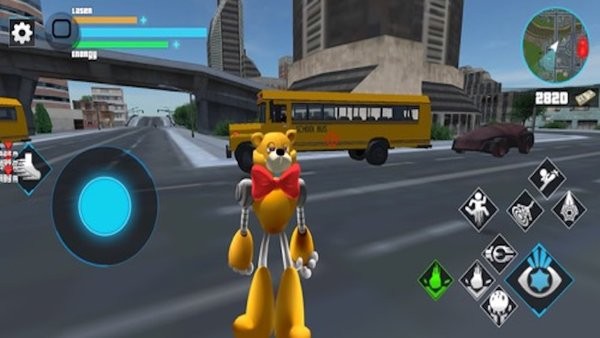 在飞行熊绳英雄,安全城市的游戏中,解锁各种杀死通缉犯。你的职责是追捕大城市的罪犯,破坏治安的人走在大街上消灭他们的邪恶计划。使用熊绳英雄技能,在建筑中找到歹徒狙击手,在他们射击目标之前用naf熊绳英雄能力杀死他们。城里的绑匪绑架了一名小学生,违反了安全规定,他们乘一辆货车离开,于是他们追上歹徒的货车,用绳子袭击将其摧毁。毒品城的黑手党在镇上的街道上举行了一次会议,你的任务是用你的绳索英雄技能在他们离开之前抓住他们。城里的犯罪团伙正在抢劫城里的银行,快去把他们杀了,不然他们就抢银行逃跑了。成为一个超级naf熊绳英雄在这个飞行英雄维加斯黑帮城市消失所有城市黑手党。