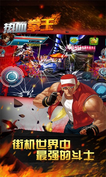 《热血拳王》是一款动作格斗类手游,以经典格斗游戏拳皇为题材重现各街机游戏人物的经典招式。熟悉的场景、熟悉的人物造型,怀旧中体现新意,效果更酷、更炫!闯关打怪,收集角色、资源;升级训练,提升综合战力;进阶,培养出街机世界中最强的斗士;巅峰对战、争霸擂台,成为真正的游戏厅皇者!超爽战斗,无缝连招,招招到肉,重温拳皇经典,寻找儿童时代的乐趣!