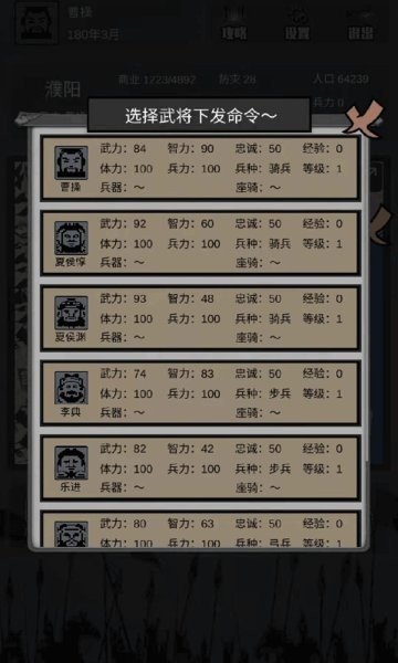 宴请:当武将体力耗尽时,赶紧宴请下他吧,否则就没体力下发命令了。
