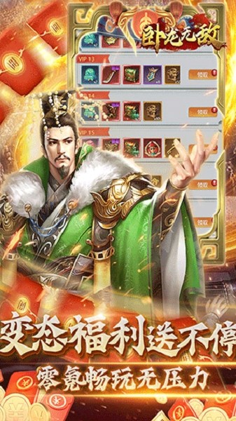 3、免费福利满满,装备、武将一应俱全:上线就送策划金手指、限时神权GM、千万元宝、千万铜钱、VIP10等各种奖励应有尽有!让你无需花费太多金钱,即可体验游戏的各种乐趣。