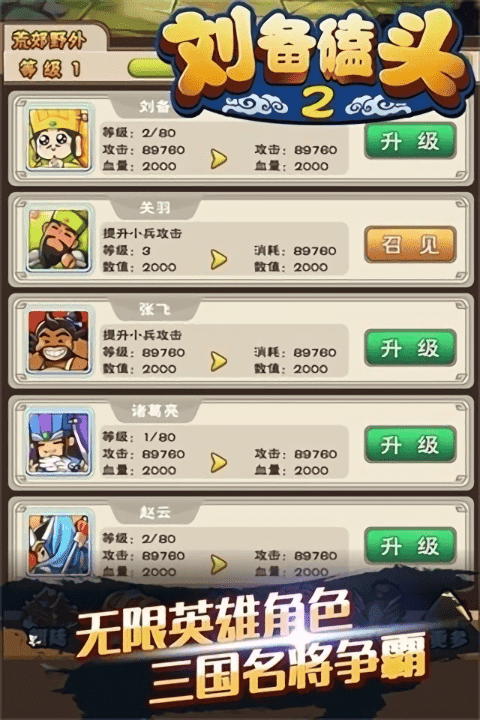 刘备磕头2最新版和可爱的三国武将一起来开启有趣的格斗竞技!无限欢乐的精彩挑战为玩家带来了多元玩法。放置元素在一定程度上解放了双手,升级更轻松。选择你的三国武将加入进来吧,喜欢的玩家不妨来畅玩一番。