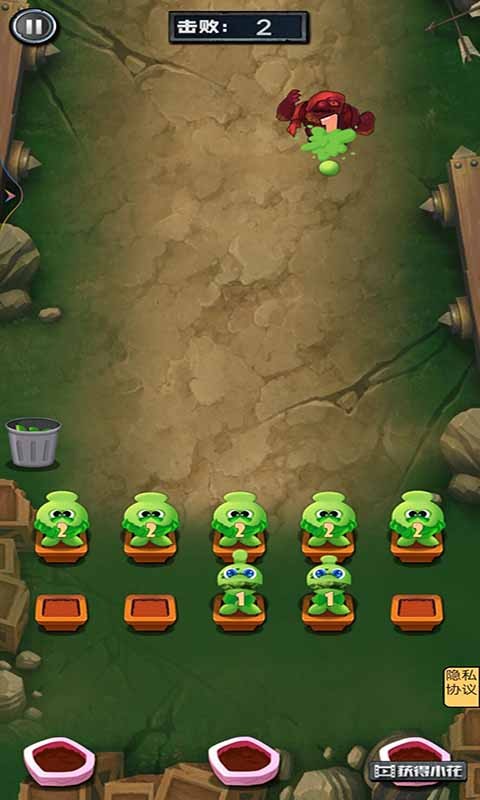 僵尸被击败后会掉落一些有用的东西,尽量多的收集他们。大的僵尸需要更多的植物齐心合力才能被打败。