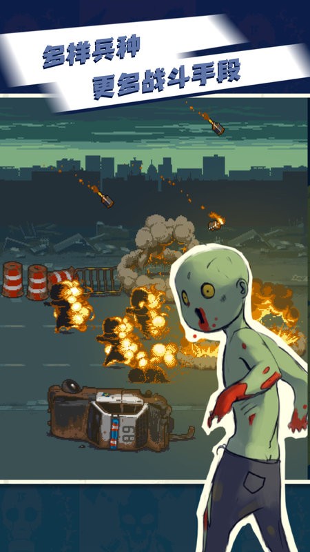 保卫你的大巴,不要让饥饿的尸群吞吃活人!一路冲过障碍,建立战斗营地供你所用。召集你的勇士队伍,派他们去作战,不择一切手段打退渴望吃肉的像素尸群!用桶子.莫洛托夫鸡尾酒和手雷砍杀.射击或焚烧僵尸。可以直接行动,引发爆炸,也可以采用潜行杀死你的对手。