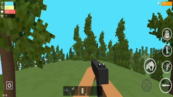 游戏画面采用了全3d第一人称视角呈现给玩家,我们将来到一个像素小镇,这里有连绵不绝的群山,也有清澈见底的河流,在树荫环绕下的小镇,本应该充满了安宁与祥和的气息,但是我们在游戏中只能感受到凄凉与恐怖。游戏以像素模式呈现,让僵尸也变得并不那么恐怖。