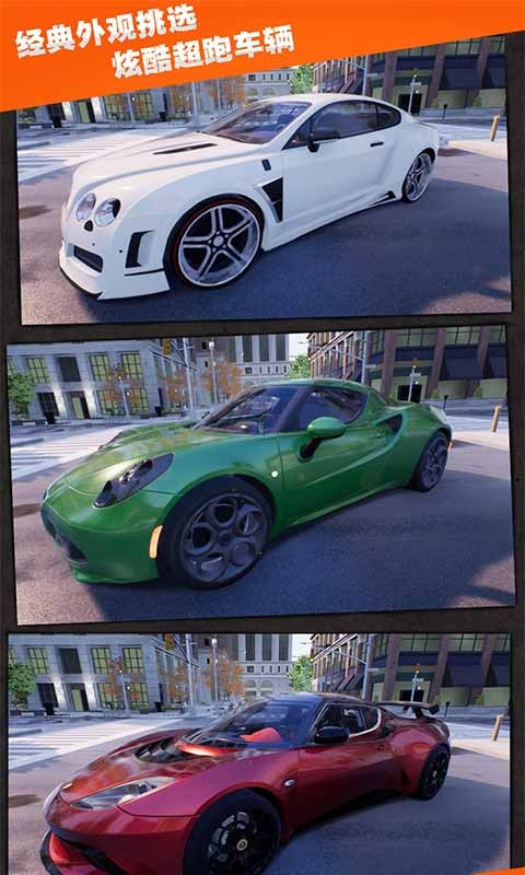 -- 从经典的城市轿车、现代轿车、炫酷跑车中选择一辆,在道路奔驰。