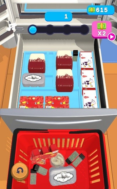 每件物品都将被收集在篮子里。在冰箱整理大师手机版中,玩家需要将所有物品放入冰箱。