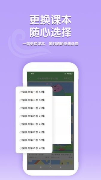 小猪佩奇口语秀app可以提供最新英语早教课程,帮助用户锻炼口语,可以学习各种语法,支持点读功能,可以快速查询单词,拍照就可以进行翻译,选择不同的课本学习,可以跟读配音。