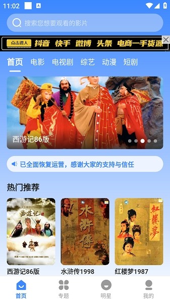 一款专为影视爱好者打造的手机视频播放和追剧软件。汇集了各种各样优质的影视资源,不仅有电影,还有电视剧和综艺,可以快速搜索自己喜欢的影视,可以满足不同用户们的观看需求。