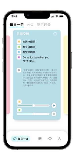 “潮州话 炷阒”这款应用看起来挺有意思的!它不仅提供每日一句的潮州话学习,还有视频和文章介绍潮州的文化,比如风土人情、饮食工艺等等。最棒的是,它还支持普通话和英语注解,特别适合那些只懂英语的“潮三代”学习。我感觉这个软件挺贴心的,因为它不只是语言学习工具,还能让人深入了解潮州的历史和文化,简直就是一座移动的文化窗口!特别是在线学习功能,有老师指导发音、烹饪潮菜甚至茶艺,听起来真的很实用又有趣。希望以后能加入更多互动元素,让学习过程更生动!