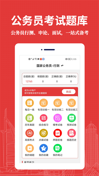 1、丰富的公考题库,包含10数年各类公务员考试真题、真卷。