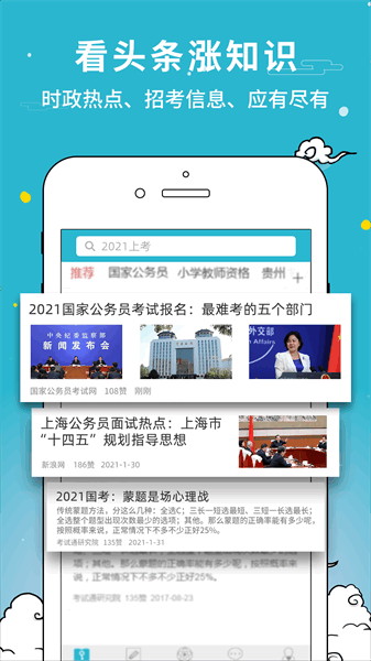 2023全新的公务员、事业单位、教师资格证、教师招聘、警察学员、社区工作者、三支一扶、公安文职、军队文职、行政执法公务员、选调生、辅警等考试题库和考试大纲,千万用户的选择。一寸光阴一寸金,让备考变得简单。