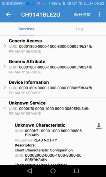 连接到蓝牙设备后,将自动枚举Services与每个Service包含的Characteristics特征值。