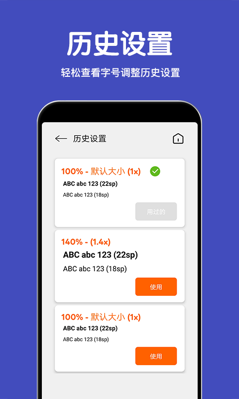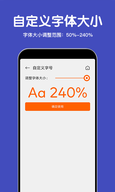 大字体放大允许你调整手机字体大小:从100%到240%(2.4倍大),突破手机系统设置限制。