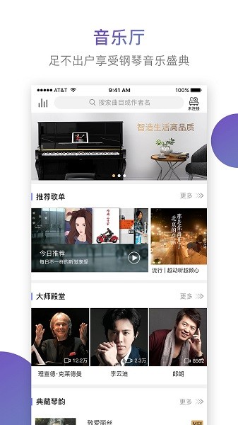 曲库功能,为用户提供大量的钢琴经典曲库。