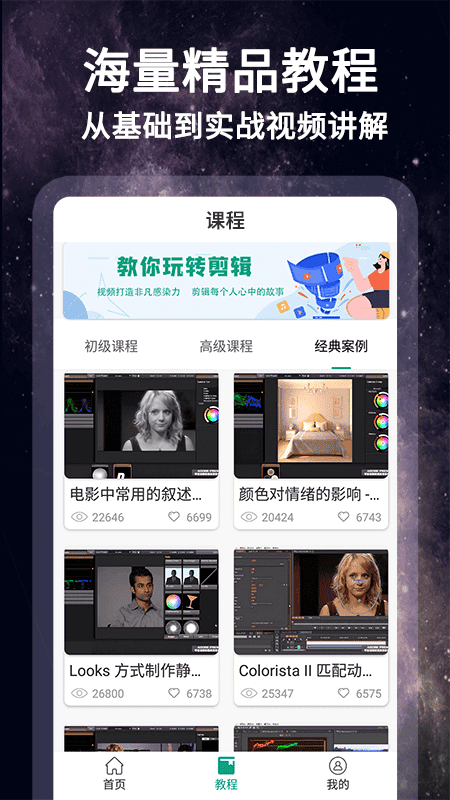 应用内包含了剪辑干货文章,新手入门剪辑教程,剪辑视频教程学习。