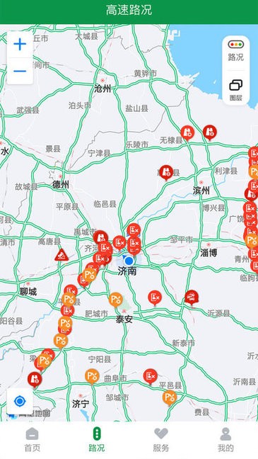 2、高速路况可用于实时更新周边最近的情况快速进行了解掌握;