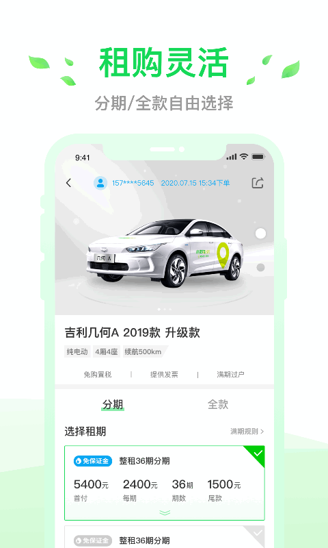 保障:以租代购,整租租期到期后车辆赠送、车辆残值可回购。