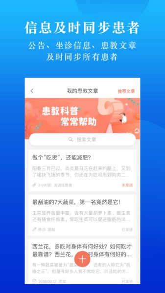 公告、坐镇信息、患教文章及时同步所有患者