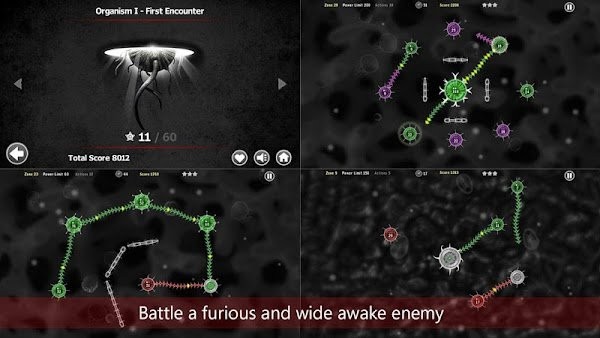你可以治愈的有机体,捕获敌方细胞。要做到这一点,绿色抗体和红色的敌人细胞之间画一条线。这将启动DNA的触角从敌人的电池芯的能量排出,并最终超越 他们。请关注您的能源供应和提高你的攻击切割的触角。捕获所有敌人的细胞保护区域。治愈所有的区域和生命形式生存...