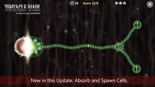 2、玩家在游戏中所控制的是细胞,同时要时刻小心敌人的侵袭,利用细胞来破坏他们的防御,使用触手来吸取对手的能量。