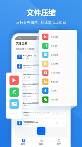 只需要几秒钟您就可以让手机的压缩文件解压,采用了最新的文件压缩、解压技术,为用户提供更多的解压、压缩功能。